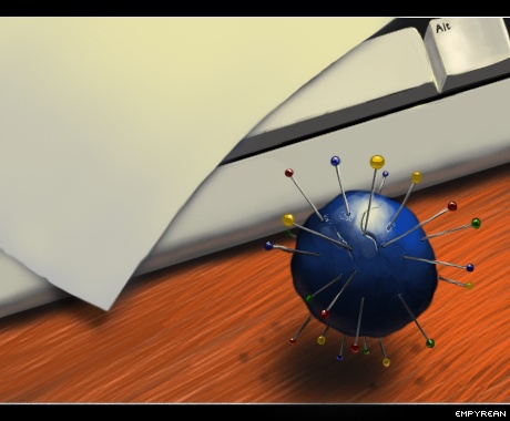 3. Slothy is still covered in grout after what is now known as the 'tiles incident' and is limping slowly across the usa to find slashdot's servers. In lieu of his broken crusade, we've decided to release some art to attract him home. To those who tried to get to our site on July 2nd, we're sorry :)