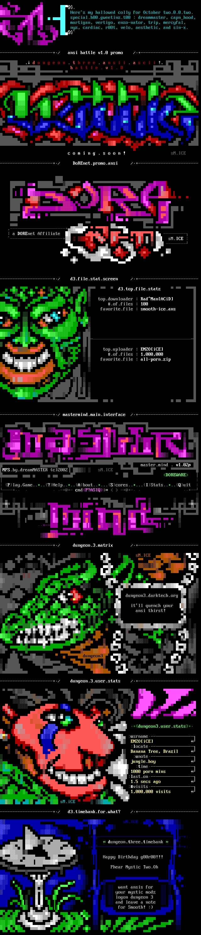 2. We did a massive server migration this month across the US to our new server, mango.ice.org, as hinted in last month's interview. After Slothy's move out to California from Virginia, the iCE server was feeling blue and missed him. So Farmy put together a new spankin server out in California on an even fatter pipe. Hopefully the site feels faster now. But we must point out that Farmy is possibly the greatest person in the world. Even though ever since he was audited by the IRS when he was 15, he does get a little TOO excited when people ask for shell accounts.