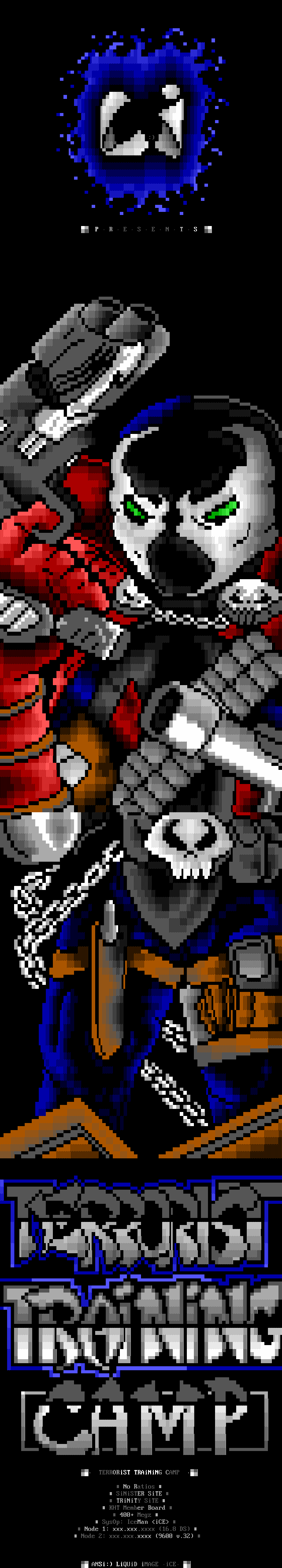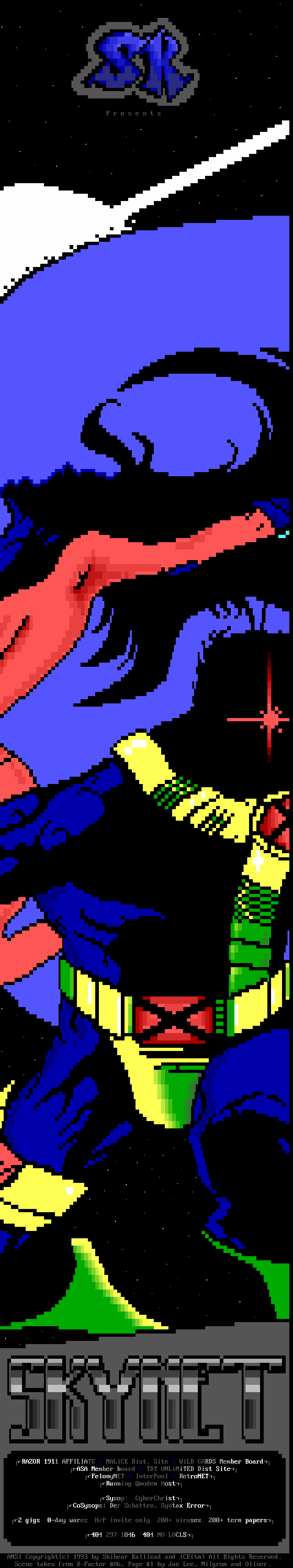 As some of you may know, iCE recently obtained the services of some excellent European ANSI talents. The former group CORP has joined iCE, bringing Genesis, Sparr, and Wiz to the iCE Team. CORP, from Finland, was well known for the remarkably high quality ANSI talents from Europe, a land dominated by the fast paced ascii Amiga scene.