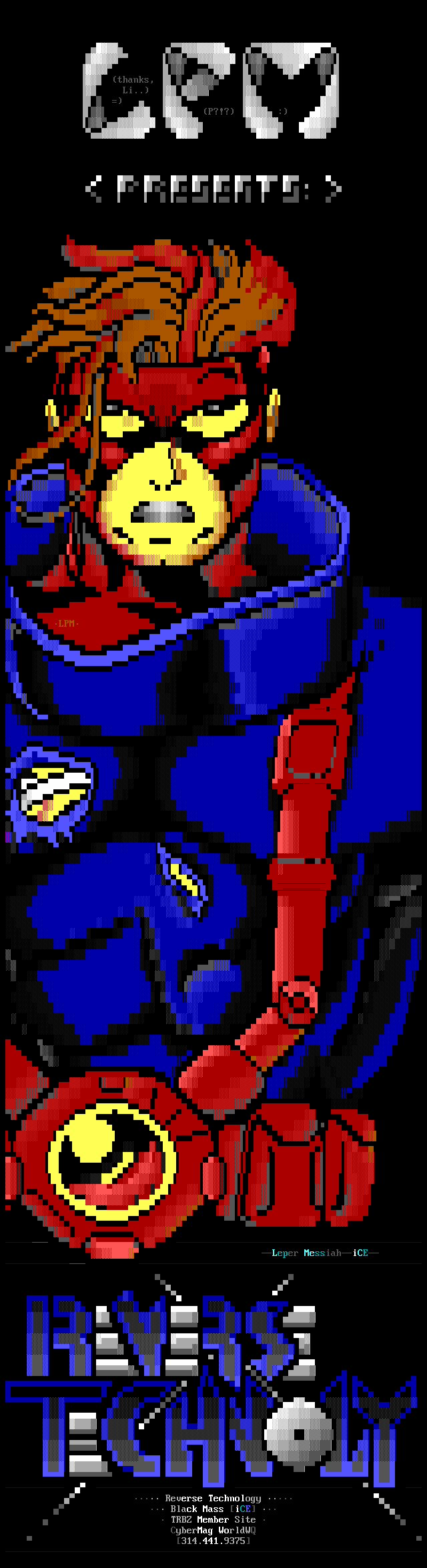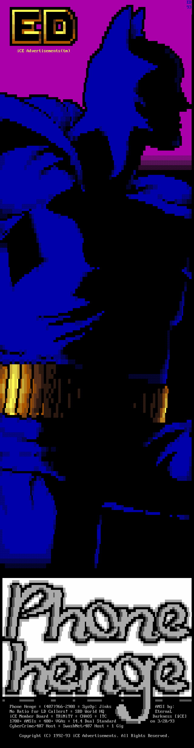 6. Articles are steadily being collected for the iCE Magazine. After the first issue is released, it's scheduled to come out about every three months. A monthly schedule was discussed but it didn't seem practical, first, the pressure would be immense, and second, we didn't feel there would be enough to report every month. The first issue will concern iCE, and consecutive issues will be more general with a section about iCE. While it isn't possible for everyone in the group to produce the magazine (the whole 'too many chiefs, not enough indians' thing), we're trying to include as many iCE members as possible and get as much input from them. Please leave any questions, suggestions, or articles on Hardwired, Sanctuary(tm), Rivendell (when it goes back up!!), or leave Felony Netmail to Tempus Thales or Shihear Kallizad.