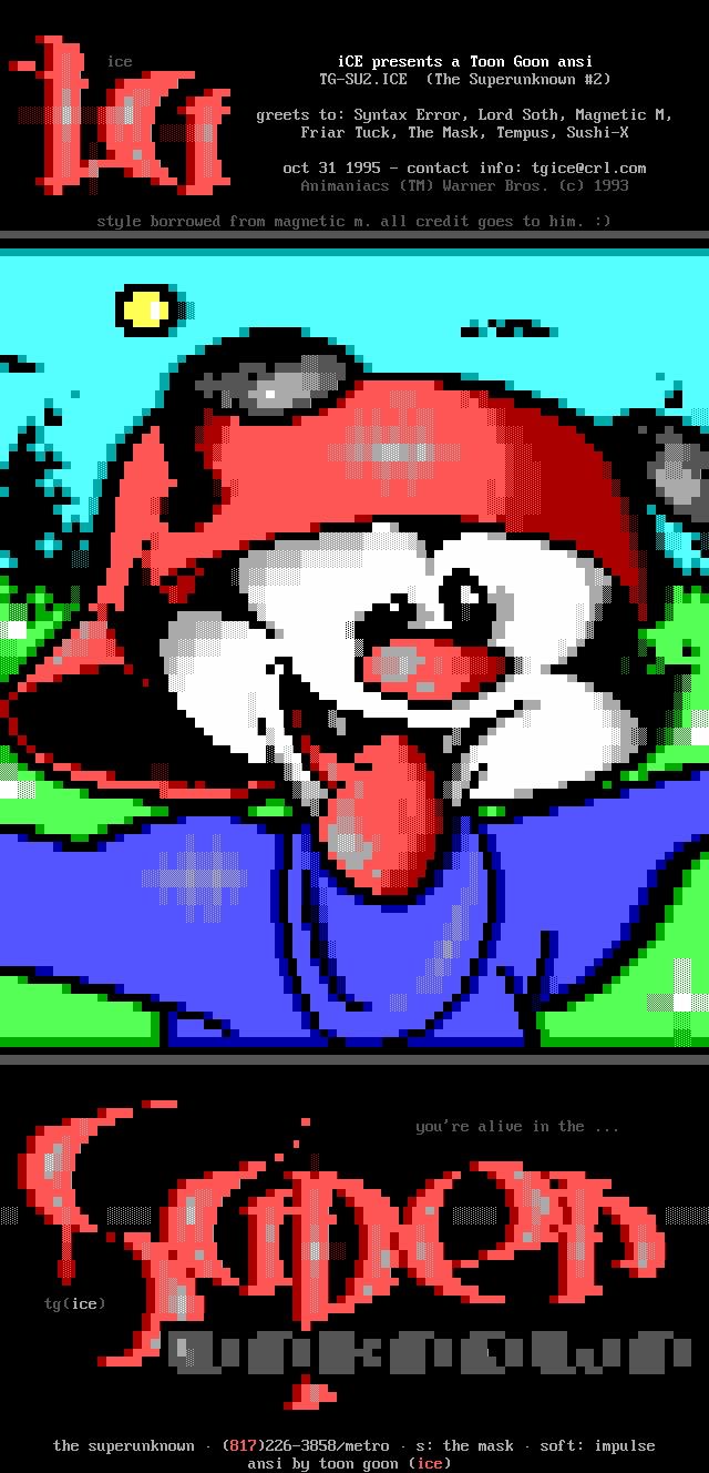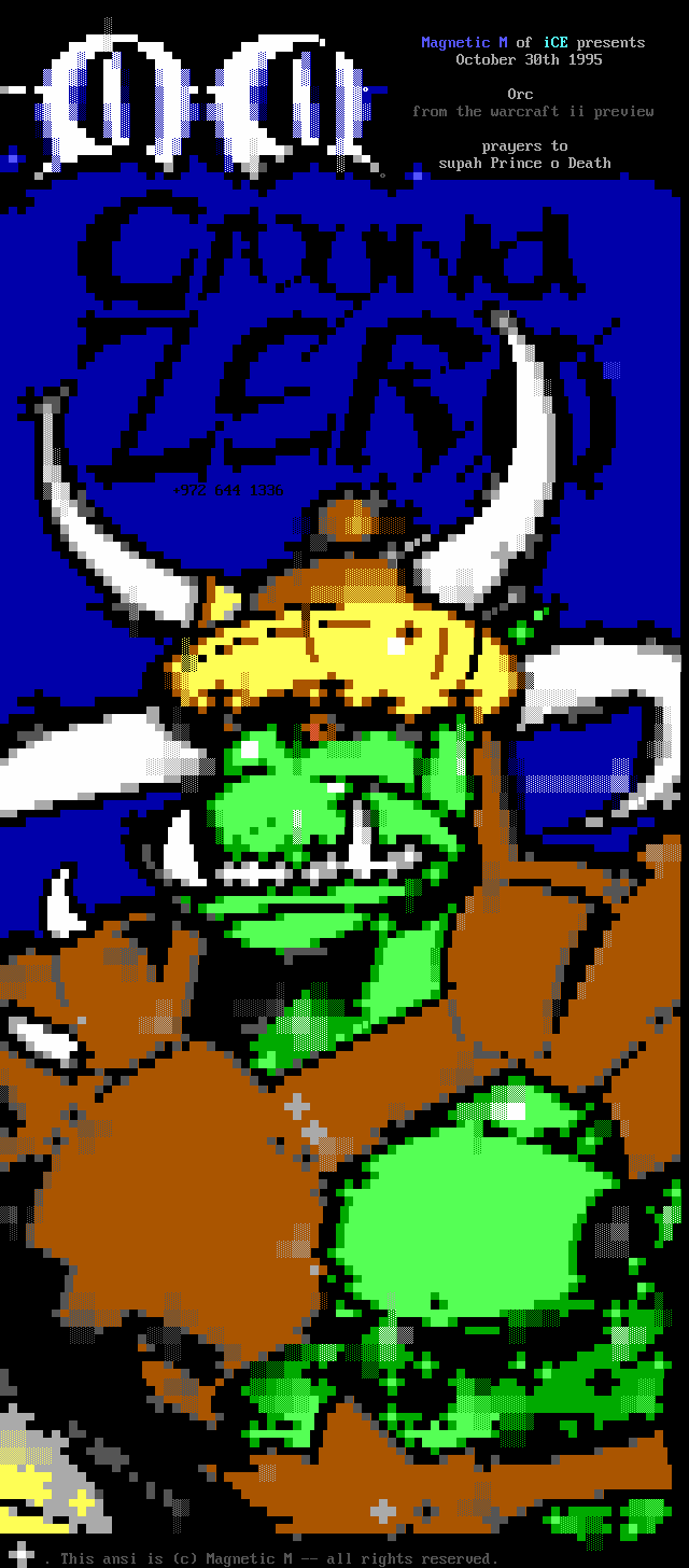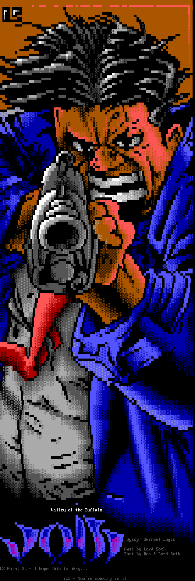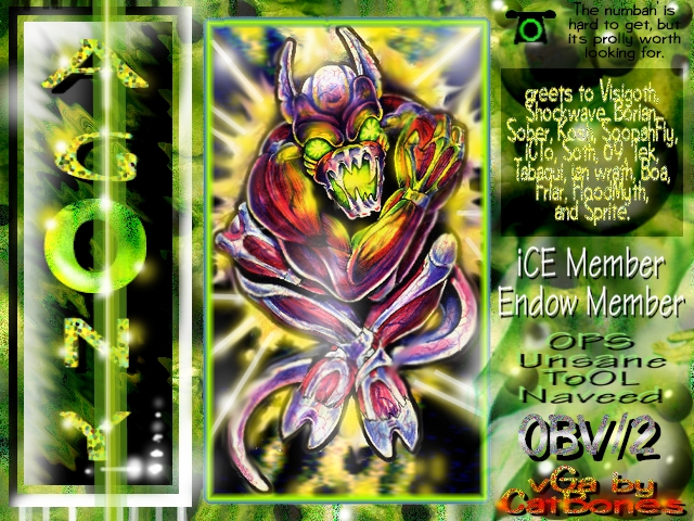 4. On a more serious note, iCE would like to extend a warm welcome to a few new cohorts in artistic representation. (uh, that's like, doodleboys and stuff -BH yeah! m m heh heh m -B) They are: Visigoth, VGA Studmuffin, Devine Styler, ANSI Starlet, and The Green Hornet, ANSI Insect and overall super guy. Yep. That's as serious as it gets when I do the .NFO file, folks.