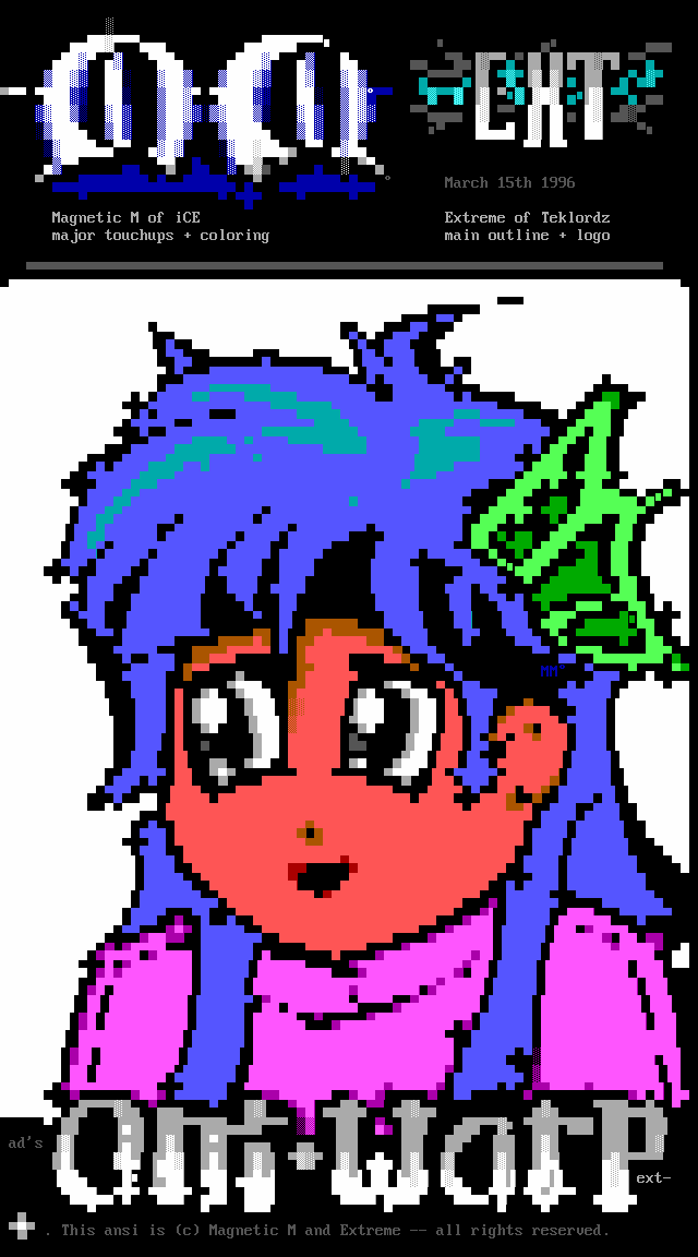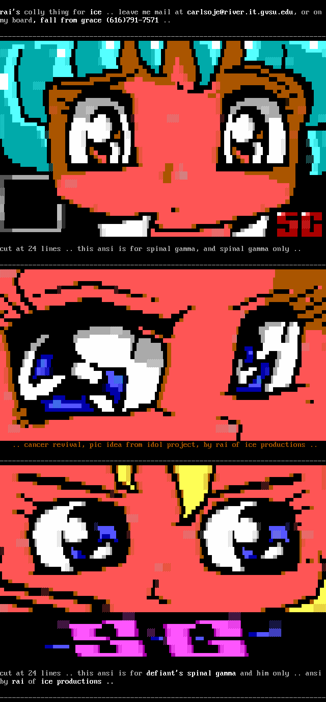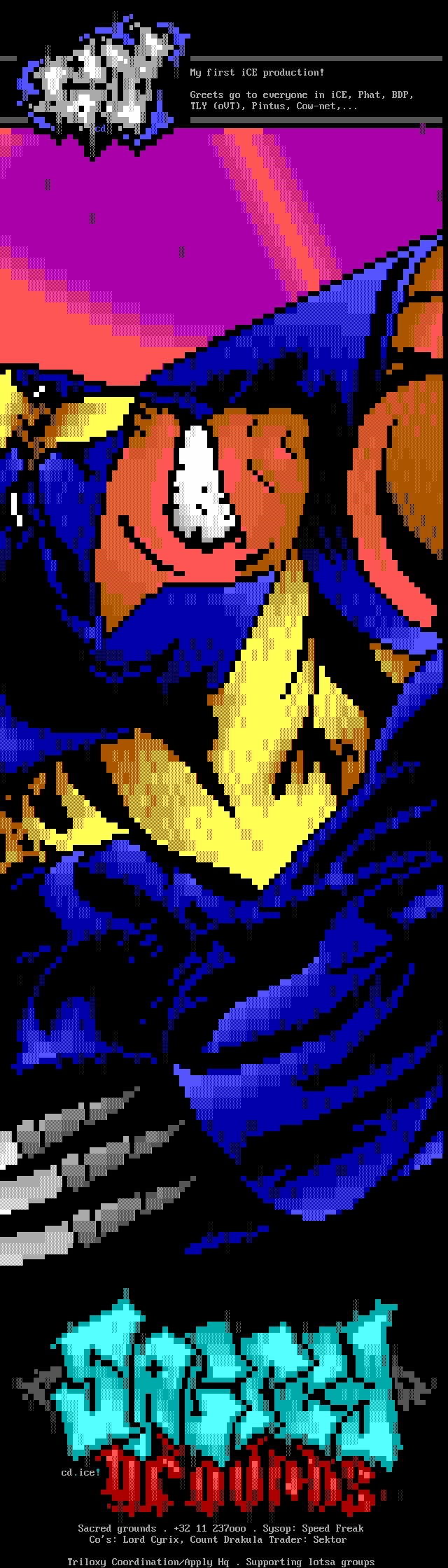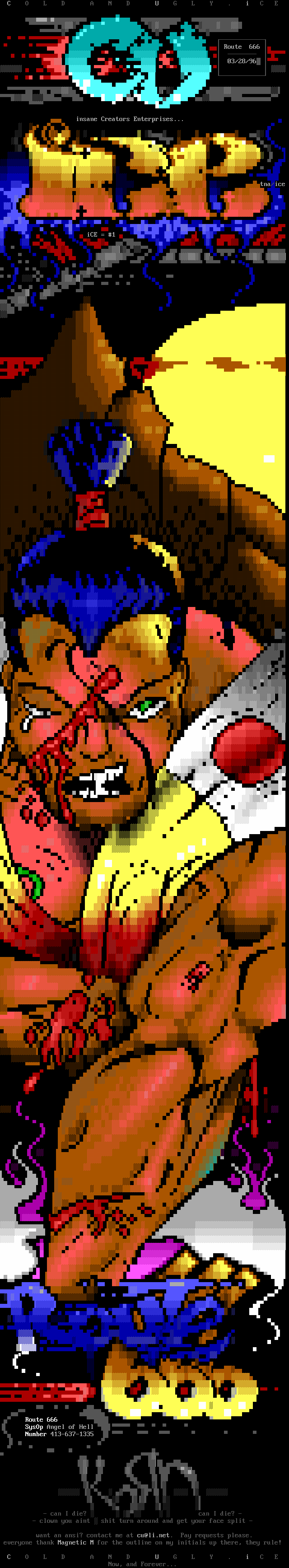 6. iCE would like to welcome another large batch of new artists to the group! In ANSI, we welcome Grendel, Grindstone, and Zarkon. In VGA, Shiva and Stolen Faith join the happy family. Also, Lintec joins us as a member.