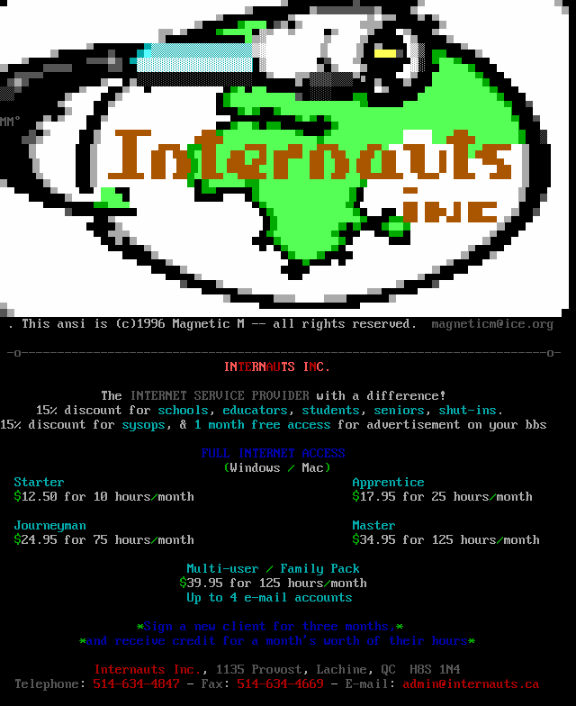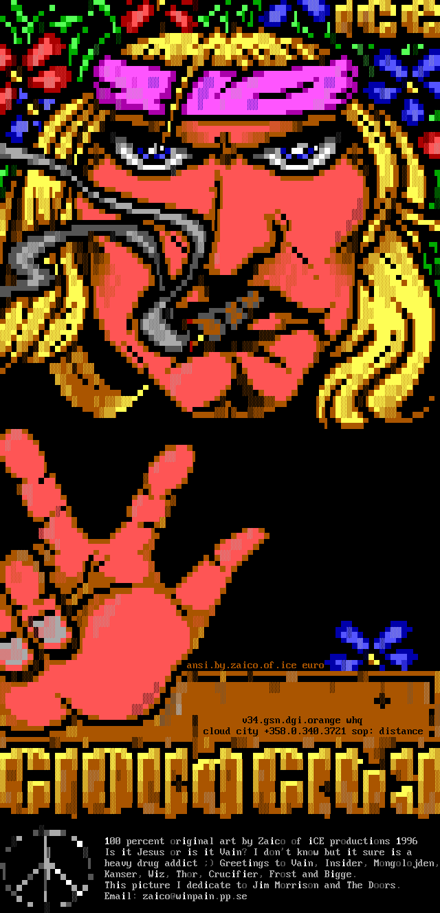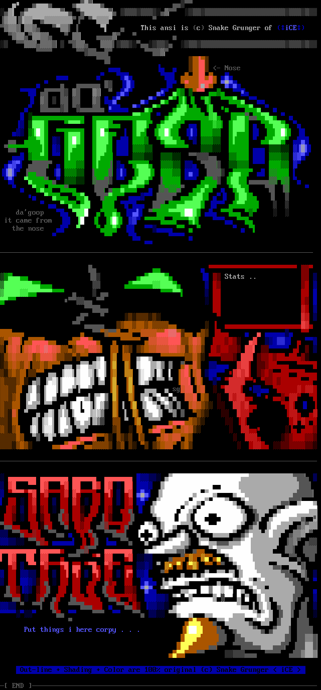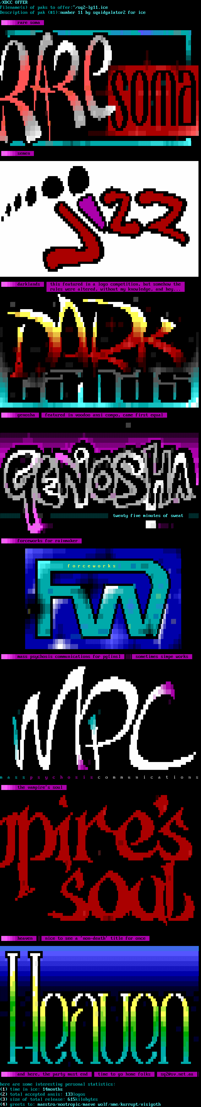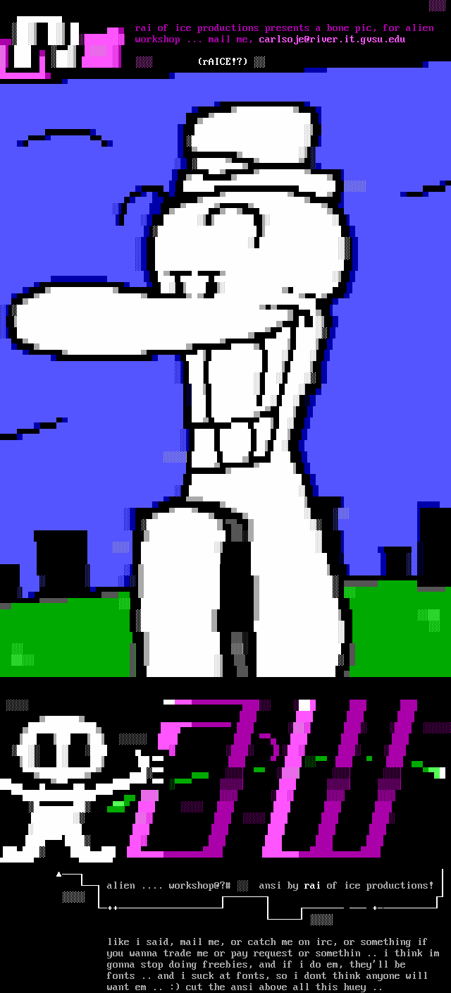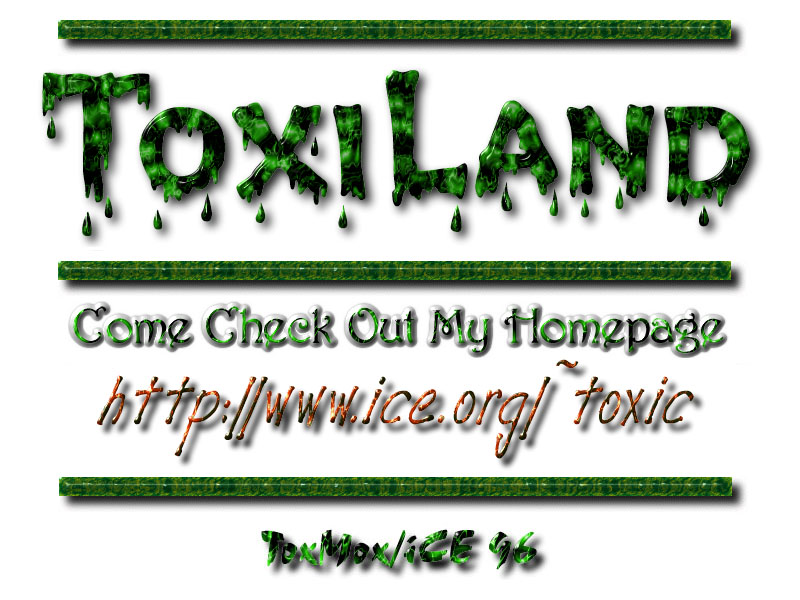 4. A very warm welcome to Inner Vision and Fluor from ACiD. These guys bring a wealth of ANSI talent to the party, as Zaico has for the iCE Euro team. Greater Evil found a pair of talented coders named Primus and Purple, from whom you can expect to see great things. And the VGA team picked up Vortex, whose eye candy ranks right up there. The music team did not pick up anyone, although they were seen growling seductively at a passing construction worker in cutoff jeans.