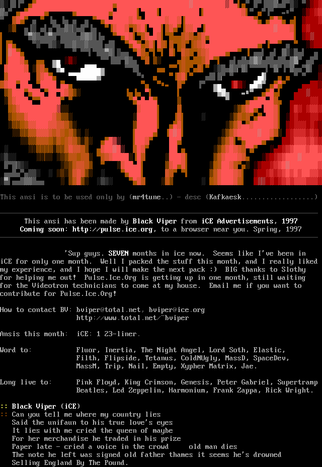 - Business as usual for iCE this month? Somewhat -- no major conspiracy or problem, but just more hard work, great art, and great friends! Although I say it all the time - keep it up and continue to be proud to be iCE! Special thanks to Black Viper for his great job putting together the iCEPACK this month
