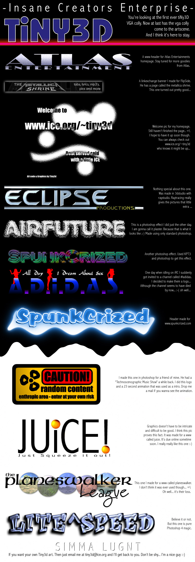 10. And for those who complain that iCE doesn't have an ASCII department and that we have alienated the world's ASCII community (we didn't mean to hurt anyone's feelings), this is for you! iCE's Aneurysm is sponsoring an ASCII drawing contest! Prizes are valuable to any artist, we're told. More details can be found at http://www.vfive.com/~vincenzo/ascii.html. Good Luck!