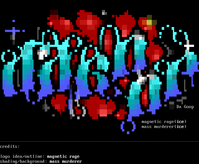 9. iCE ANSI artist Black Viper decided that he's going to be taking a break from the scene this past month. He will be finishing up a couple of works and resting for an indeterminate amount of time. Black Viper is known for his awesome works as well as being a group-focused member who donated his time for many months this year packing the iCEPACK at the end of the month. He will be missed, and we really appreciate all he's done for the staff and the group. Come back soon, BV!