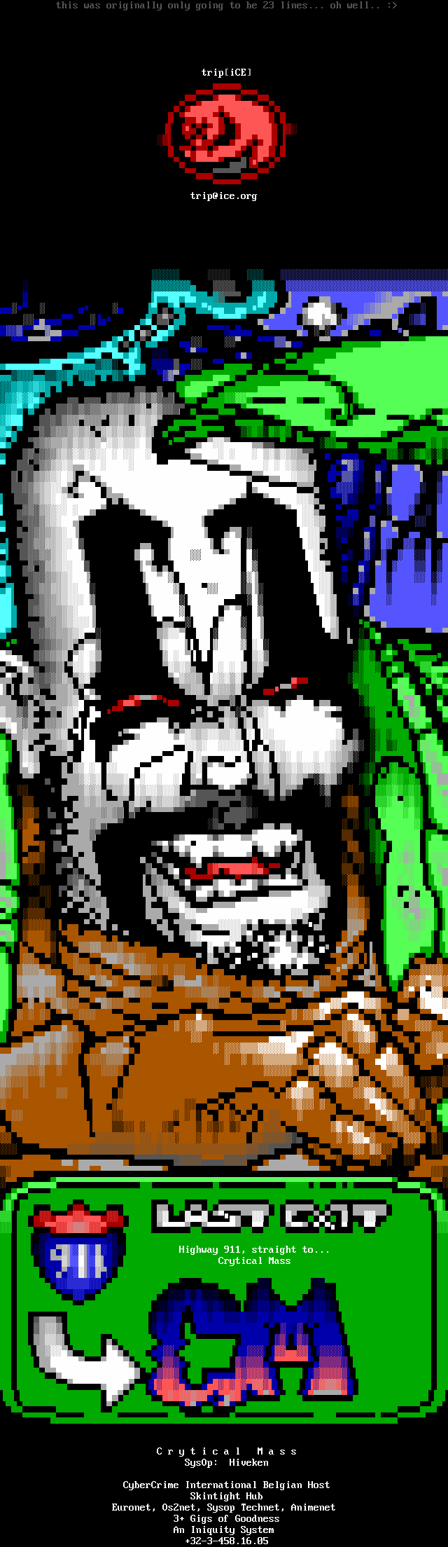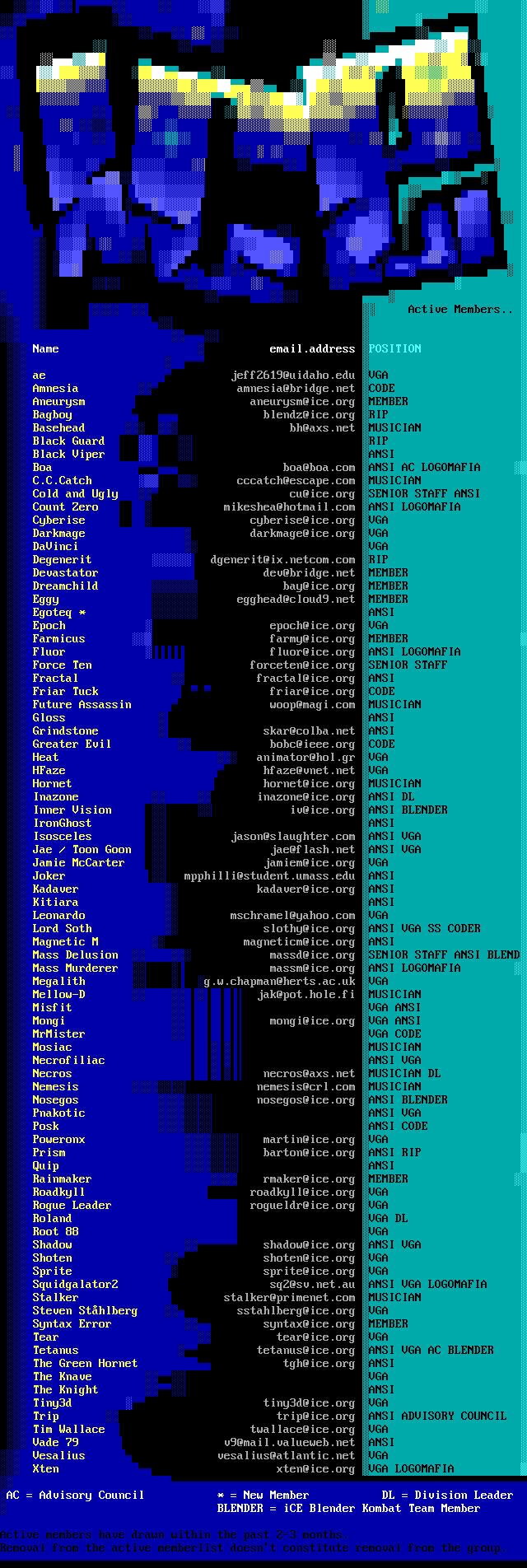 6. In what will probably be our last newsworthy piece of this info file, Mr. Mister is continuing hard work on what will undoubtedly be as great of a viewer today as when iCEView first hit the scene years ago. Ansi, BMP, JPG, BIN, RIP, and IDF support are either finished or almost done. We're working on adding some neat features that will differentiate our viewer from the field. Look for something useful!
