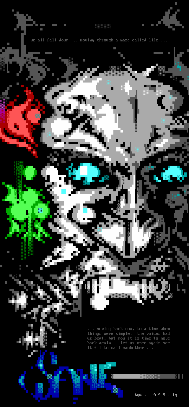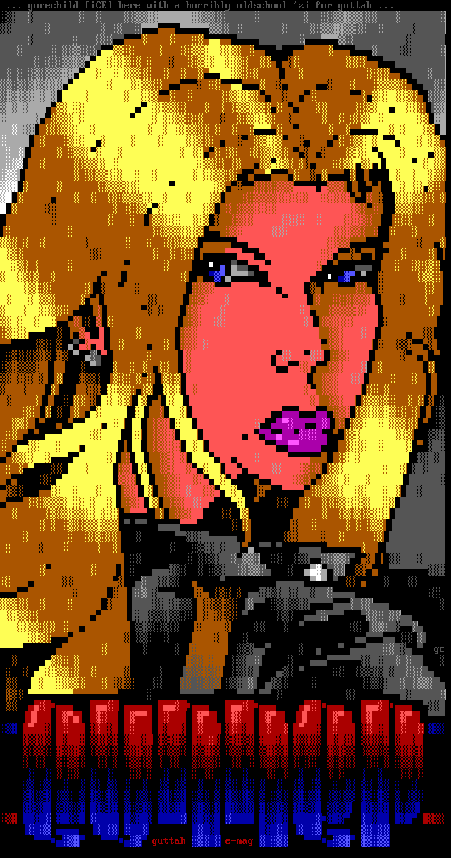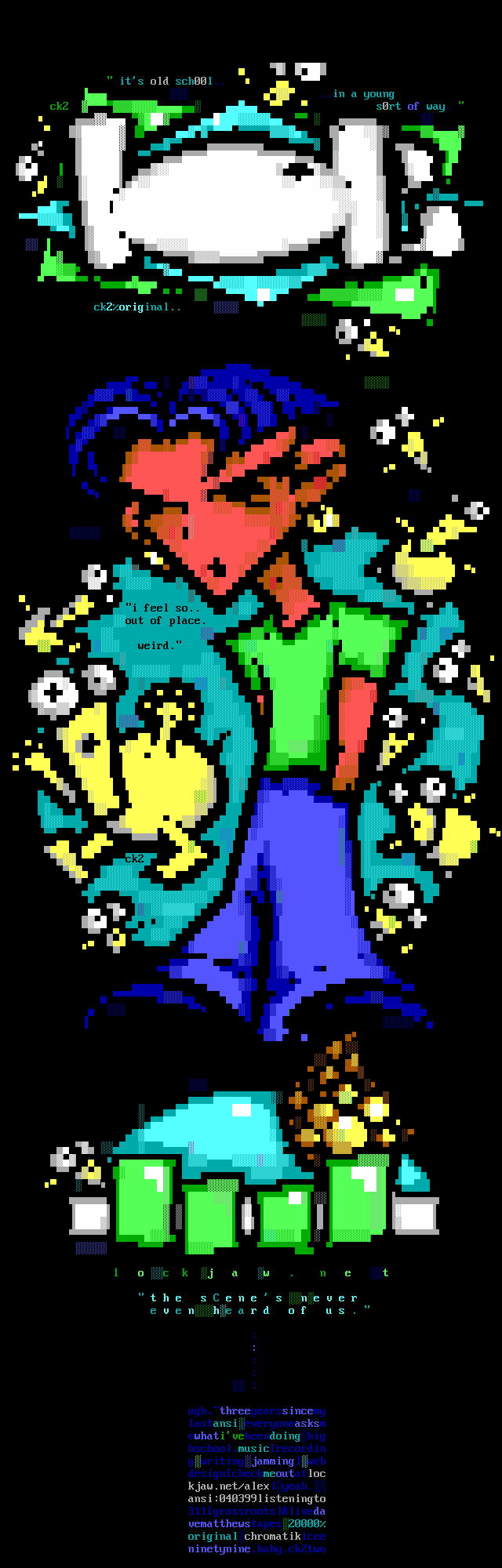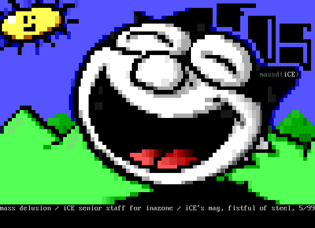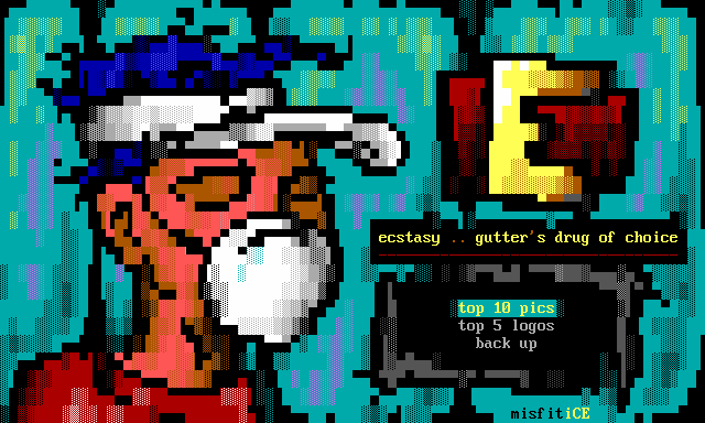 2. In the Fortress of Solitude (coincidentally abbreviated by FOS) this month, the extra time police suggested we try out our cryogenic equipment as a routine test. By mistake, we unfroze Chromatik, Gorechild and Misfit. Not by mistake, they were forced into the iCE mines and out popped a few pieces of the past. Witness new CK, GC and MT work this month in iCE ANSI.