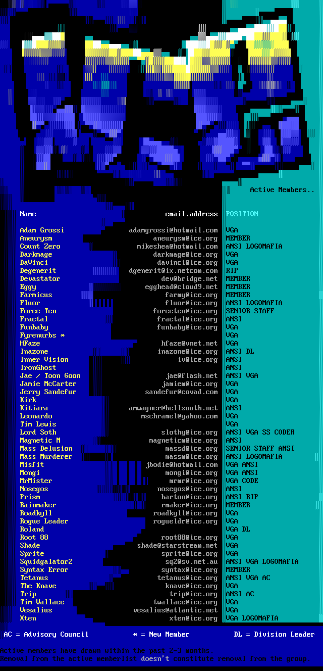3. While some people might claim we're in "summer" already, iCE always feels like a warm spring day. With that fuzzy feeling in mind, we decided to take a duster to our memberlist and clean up some of the cobwebs. It once again reflects "active" members in iCE. Except for Force Ten. But nobody likes him anyways, what with his big teeth and all.