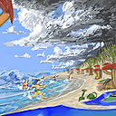 Kinda a fluke my tractor tile came out looking so clean; result of working at 400% actual, even though my brush was big and sloppy. Hardly a Rockwell scene, though. I am tempted to pull it and modify, but I'd rather move on and try a fresh start at the style. Maybe I'll give it another shot if I figure something out.
