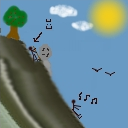 Kinda a fluke my tractor tile came out looking so clean; result of working at 400% actual, even though my brush was big and sloppy. Hardly a Rockwell scene, though. I am tempted to pull it and modify, but I'd rather move on and try a fresh start at the style. Maybe I'll give it another shot if I figure something out.