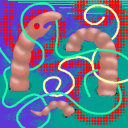 Kinda a fluke my tractor tile came out looking so clean; result of working at 400% actual, even though my brush was big and sloppy. Hardly a Rockwell scene, though. I am tempted to pull it and modify, but I'd rather move on and try a fresh start at the style. Maybe I'll give it another shot if I figure something out.