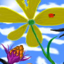 Eddie... first let me say i didn't delete your tile. but i can see what the trouble might have been... the fence kinda ran headlong into the upper right corner leaving little room for a good transition from your neighbor on the right to gecky's tile. you did match Mantic's style pretty well, but imo a bit more Van Goghy woulda helped. it would've been superb on a Rockwell quilt ;o)