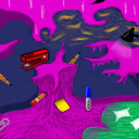 Kinda a fluke my tractor tile came out looking so clean; result of working at 400% actual, even though my brush was big and sloppy. Hardly a Rockwell scene, though. I am tempted to pull it and modify, but I'd rather move on and try a fresh start at the style. Maybe I'll give it another shot if I figure something out.