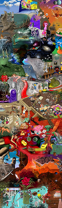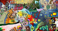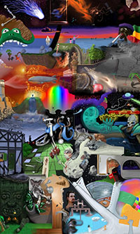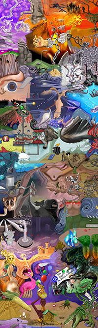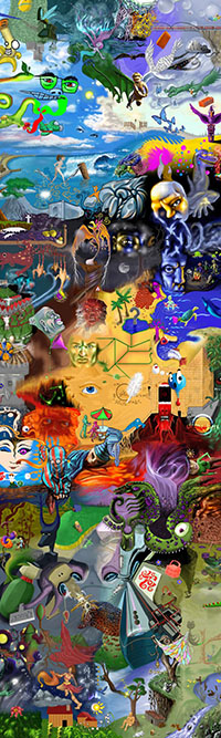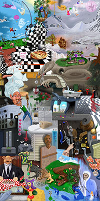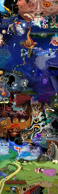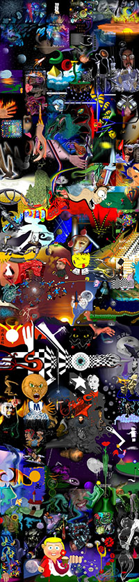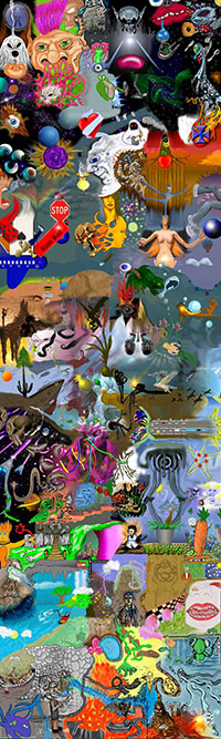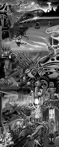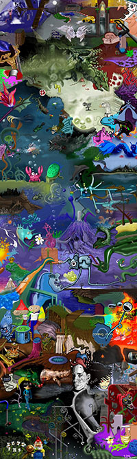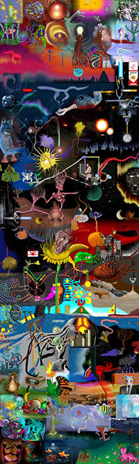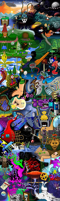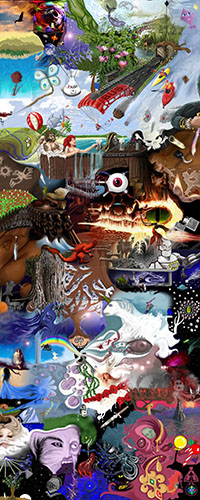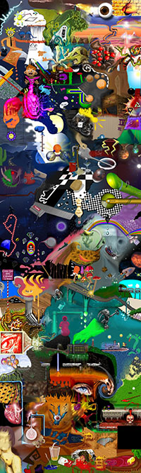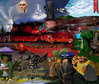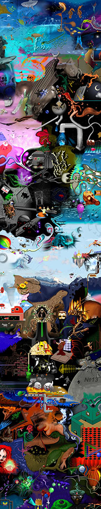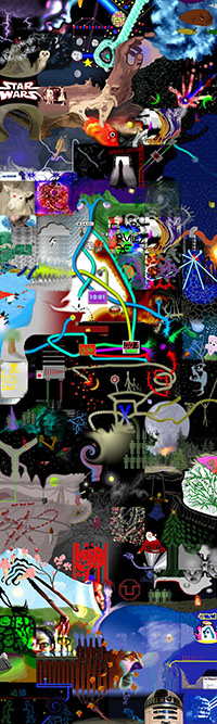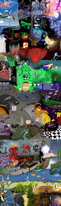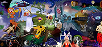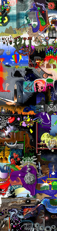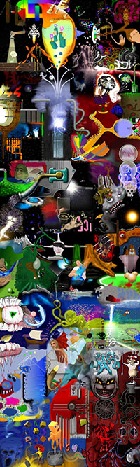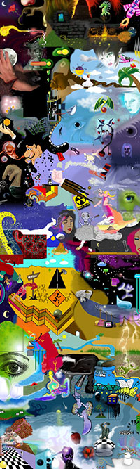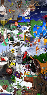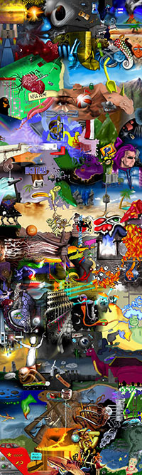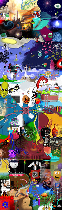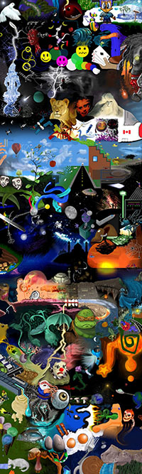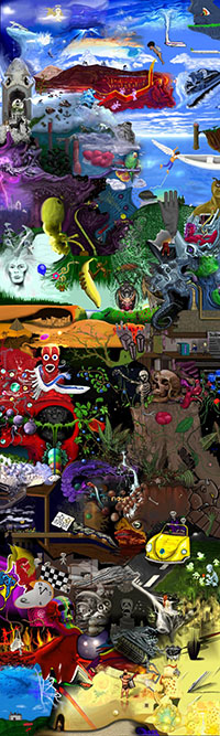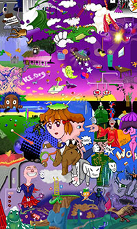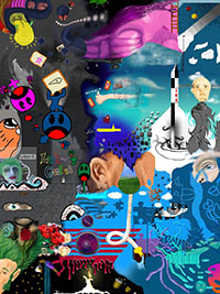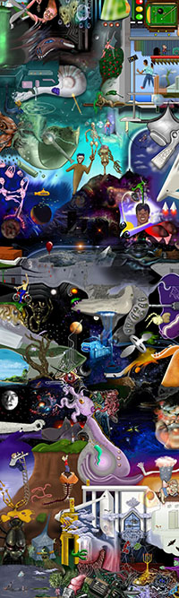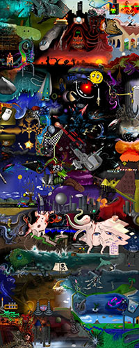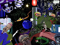 and this one's intended to be surrealistic. So robots, spacemen, flying saucers, buses, airplanes,