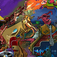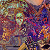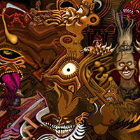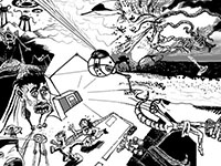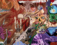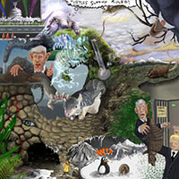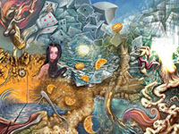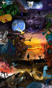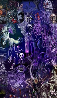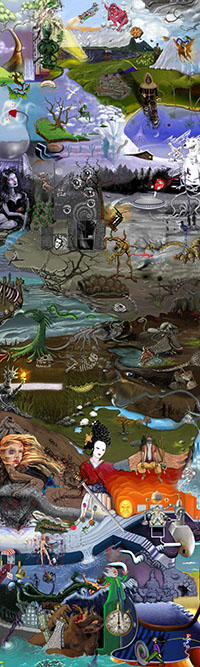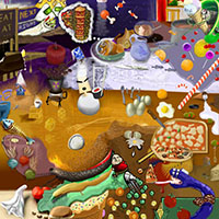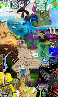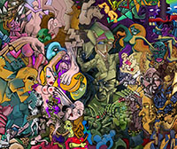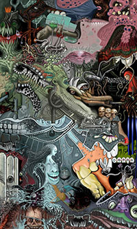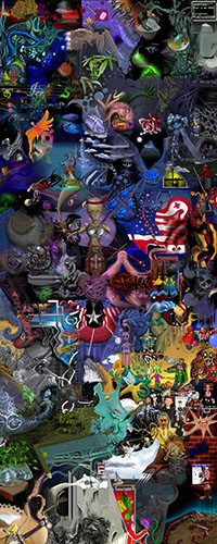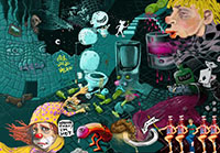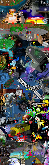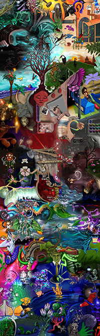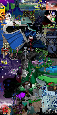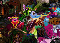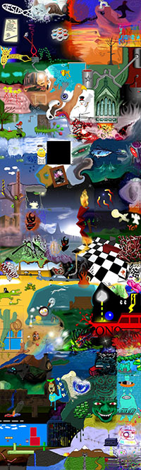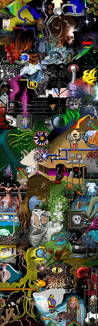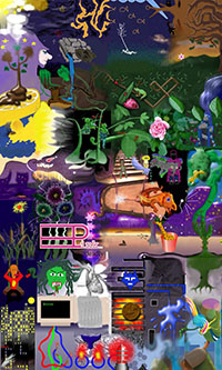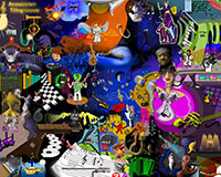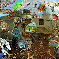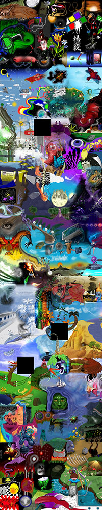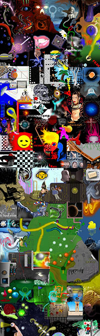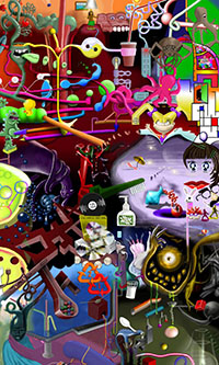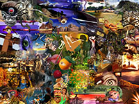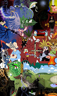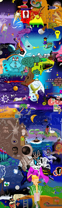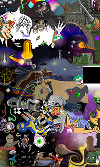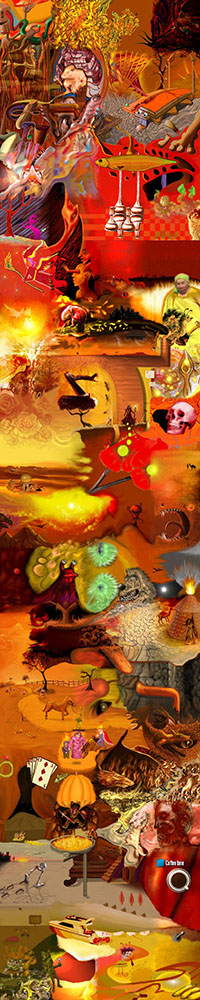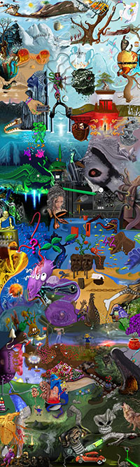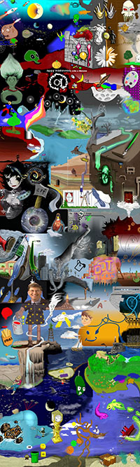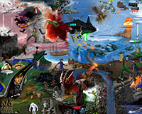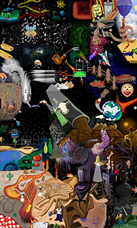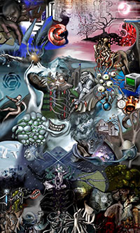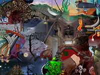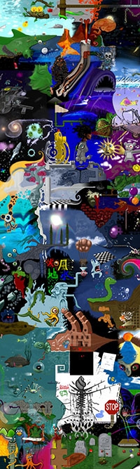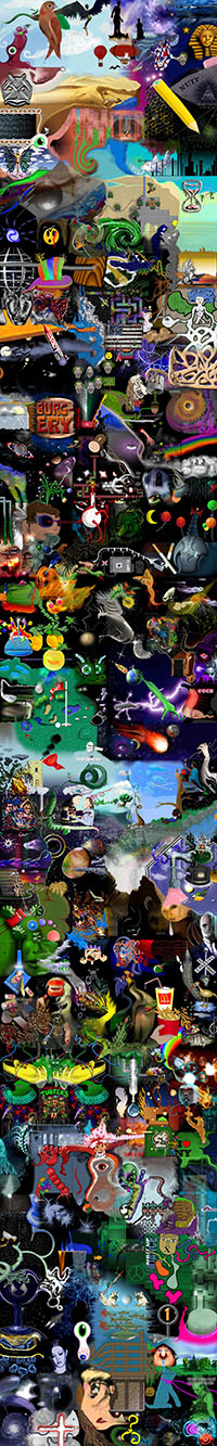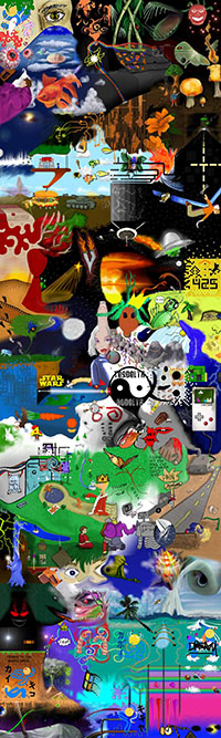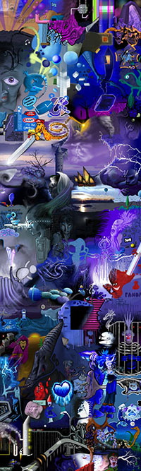 and this one's intended to be surrealistic. So robots, spacemen, flying saucers, buses, airplanes,