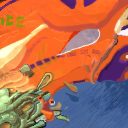 uh that's complicated. jito says the facial expression distracts from the rest of the quilt. I kinda agree...so now he's more subdued.