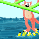 If you don't mind me giving you a tiny crit, I'd have suggested more distinct shading, especially on the cat(?) and the fish - when looking closely I can see that you _did_ shade, but it's not that obvious since it's such a tiny picture and the "bars" are quite heavily shaded in comparison.
