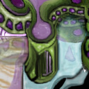 i know the top blend was not *perfect*... and i disagree wholeheartedly about the purple things being pixelly and *just chunks of color* [they look identical to the ones on the border i got when i zoom in several times... maybe it's your monitor]...