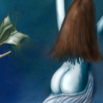 yes she is, and on one hand she have her tumb on the wrong side, and the other arm is a harpuna or something like that.. :)