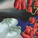 Hehe, the little crying thing is supposed to be a frog, but there's no way you could tell, it doesn't really look like a frog to me either.. and frogs don't even have teeth. Oh well. ;)