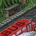 It looks like you smudged your bottom border, and I think you changed the texture and color of the road too abruptly.