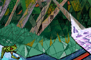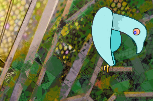 i don't see the crocodile though, guess i can't take credit for it... there's a cute little frog though... and your bird looks like he's thinking about swooping down on him.