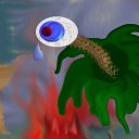 good idea-but here's a few hints...just because if I don't give them to you, someone else will-and probably not as nicely---just mirroring the borders is a good way to make sure that they blend,but it's really obvious--you have to try to work with them and incorporate them into your ideas...for example-what happened to the right-hand side? It doesn't continue into your picture...I dig the flames though-just keep these hints in mind for your next tile and I think you'll be more impressed with the way your tile fits into the quilt! :-))