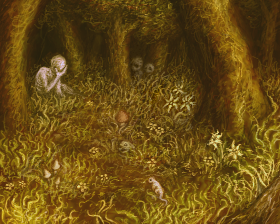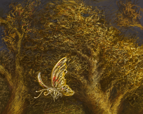 ...the only thing i dont like is that you did not continued the tree behind the big one,... i mean the one with the weird guy looking out of the bole. it would look better if you make a whole tree out of it. not to say i dont like the guy, he is really cool, but in consideration of the so far really nice composition of the quilt... anyway, thats just my humble opinion