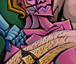 I like how the grey guy turned out (even if I misread the slash on troy's border as a "dark spot"), but not the stuff above his head. Or that face under it; I probably should have left the orange with a few slashes in it like in troy's tile. Since I made the foreground before the background, there's not really enough interesting overlapping; it's almost all perpendicular, in fact. Weird.