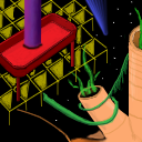 On this tile, I used 'dodge' on the grass, three layers with smudging and color dodge on the boxy things from the right, and 5 layers of the same for the ray in the middle (too much work for too little effect :P).