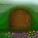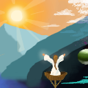 Extending a color from an edge a few pixels into a tile and then smudging it is not the best way to blend to a neighboring tile. A more effective way to blend to an edge like this is to continue the colors well into the tile and use it as the background for whatever you want to paint over it; this method makes a more logical continuous image that builds on the work of the neighboring tile. Second tip: when painting a tile with only one edge to blend to, a tiler has a lot of creative freedom to introduce new colors, textures and themes into the quilt. This tile could have taken much greater advantage of this opportunity by creating a more dynamic background and extending more figures beyond the edge of the tile.