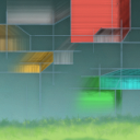 Personally I like this tile. It is as if you are looking into an alternate dimension that just happens to overlap the current dimension. The fading from light gray at the bottom to dark at the top gives the tile a sense of depth. The blocks give the tile life and movement due to their blurred edges.