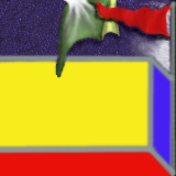 it must have been hard blending from the hard-edged image above you, but did you have to give those harsh black edges to the surrounding tiles? It's a lot better if you try to draw something interesting in those surrounding pixels you fill in, as then other artists can try and extend from this, rather than having to blend in a black edge. Although I do like the red glob stuff :)