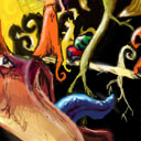 I really dig how you made the grass/sand seperation look like the tips of his jester's hat. And the detail on his face, his pants, and the bucket are really neat. This is a cool tile!
