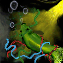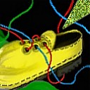 That tile was titled "Flipped-flop", a play on words. I checked out a tile which was a right hand bordered tile and completed the tile which had no left border to be concerned with. Although that tile had the red and blue threads (laces) for me to bring down from the top, it would have been correct insofar as it was originally drawn and concieved but as usual, Eddie had to throw in the monkeywrench. You see, it was a right bordered tile that I had submitted and was correct as drawn but when I checked out another tile, almost exactly alike (except for those blue and red threads meeting an incoming border), I just couldn't resist the urge to flip the artwork and submit it for a second time, in reverse. I never thought it through to see those threads and felt sure that if it were used, it might appear as the missing (other), to a pair of whatever footwear it might have passed for! As I was in such a quandary when it came time to send it off to the quilt, I had no real inspiration to name it and thus gave it the true name, "flipped-flop". Ironically, the only thing that I got right on that tile was the apropos title! It's for a surety that I won't be doing that again. Anyway if the (first) "original" tile gets posted, you can deduct the bonus points. Don't you just abhor regression? By the way, thank you and Juz (above) for looking in on me... I was lucky enough to be able to qualify to contribute to Mainquilter's and the Photomanip quilts and I guess that only a hardhead would continue in his old ways! Forgive my obstinance with the promise that I'll leave the newbie tiles back there in yesterday and move ahead on the quilting. Again, nice to hear from you Katherine. Ed M. (LIE)