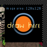 The background that I've blended here has been directly lifted from the tile that provided the border, I windowed it out and placed it within my own boundaries but blended little more than the row of pixels which came against the original border. My tile was completely done to match the bottom border because I lifted only the color value as there was no detail to repeat. I mottled the background then with geometric shapes having the magenta value, black and shades of the original brown background but did not run my image to the border. I did obtain a clip of a skull and on a separate file, made distinct changes to the physiognomy of it as well as the shadows and accentuations. I changed the gamma (contrast) and the coloration to range in the brownish tonal value that was already there in the background and then I threaded the rope thru the eye sockets simply to offset the stark and lonely skull. We have the greatest latitude when there is only one border on our tile because we get to set the borders for three neighboring tiles and there, blending falls upon the shoulders of others. I don't feel that by using a clip art image as a basis for my work, that I am forfeiting my right to be considered an artist because I have understood art to be a thing of the eye as well as of the hand, that which is composed to look right, is right. Although there are purists out here that want very much to discipline others to be originating their own creations within a tile, I believe that a composed tile, down to the placement of all thirteen thousand pixels, each in it's own place, makes any contribution to this quilt, a valid contribution whether to teach us what to do or what not to do. Please do not let me discourage you from developing the skills that will take you to a higher calling but rather let me get you to understand, that Art by any other name is still art. As to beauty, that is in the eye of the beholder! Thanks for your post Shiro.