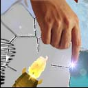smudging does not equal blending. The idea behind the quilts is to create a seamless transition between tiles (note the three tiles above yours and how they use the elements given to them in their border pixels). Avoid merely smearing colors from the border into your tile a few pixels and then changing abruptly to a different theme/picture/whatever. That said, you did a good job at providing interesting borders for others to work off of. Keep at it!